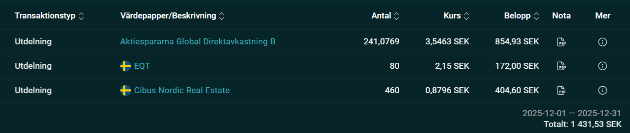 Ja, 2025 blev ett bra utdelningsår, främst tack vare ökade insättningar och återinvesteringar av årets utdelningar.
